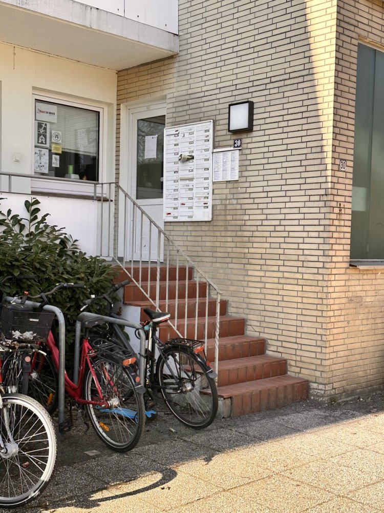 Die hier angebotene Wohneinheit befindet sich in der 3. Etage eines Mehrfamilienhauses mit insgesamt 30 Wohneinheiten. Die Wohnung ist über die dem Gebäude vorgelagerte Treppenhausanlage und über Laubengänge erreichbar und verfügt über einen Balkon mit Westausrichtung und hat einen separaten Abstellraum auf dem Dachboden.