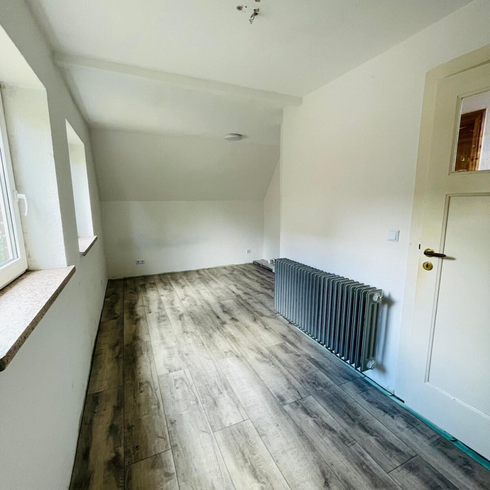 Angrenzend an das Esszimmer befindet sich ein weiteres, separates Zimmer, das sich flexibel als Schlaf-, Kinder- oder Gästezimmer nutzen lässt. Im Obergeschoss stehen Ihnen zwei individuell nutzbare Zimmer zur Verfügung. Von einem der Zimmer aus haben Sie Zugang zu einem großen Balkon mit schönem Blick in den Garten. Ergänzt wird diese Etage durch ein weiteres Badezimmer mit WC und Badewanne. Das Haus ist teilunterkellert und bietet neben dem schönen Garten außerdem einen Partyschuppen sowie eine Garage.