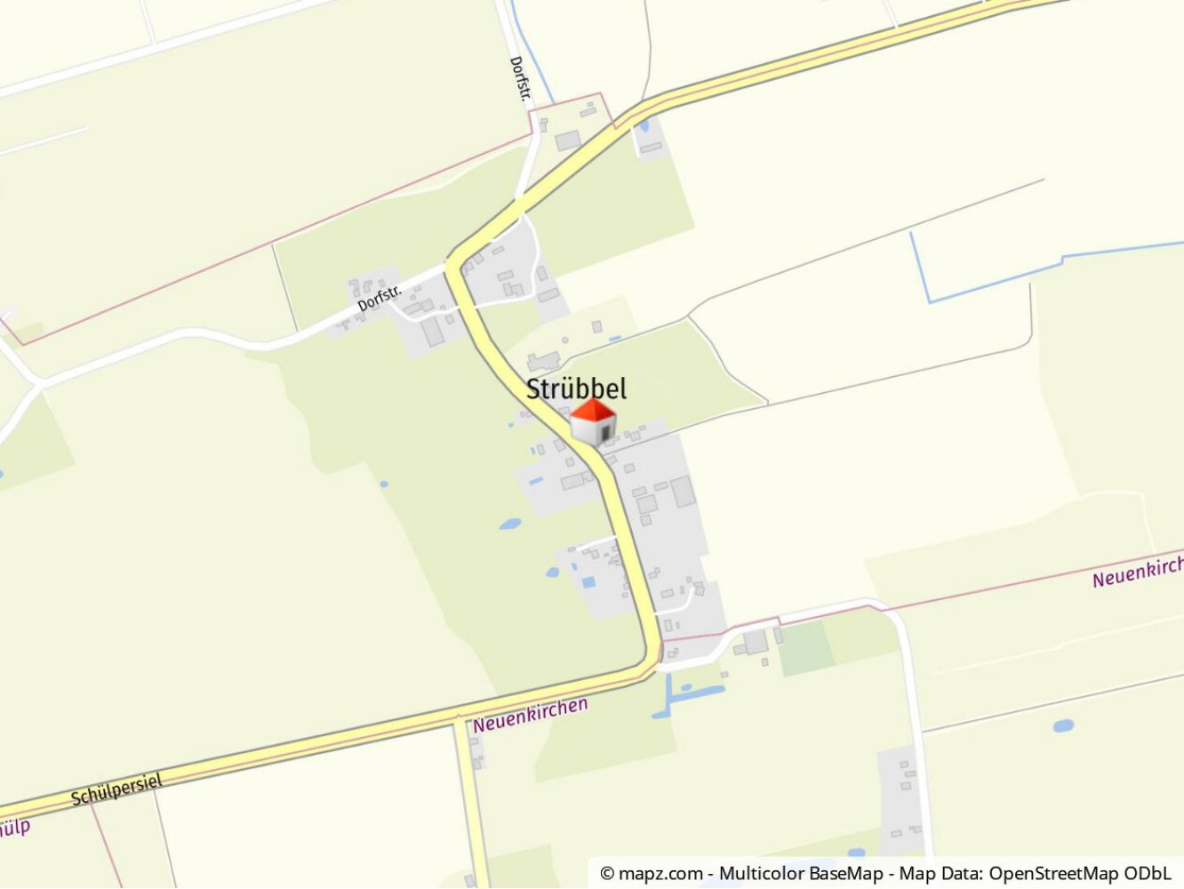 Die idyllische Gemeinde Strübbel liegt nordöstlich von Wesselburen an der sog. grünen Küstenstraße in Dithmarschen.