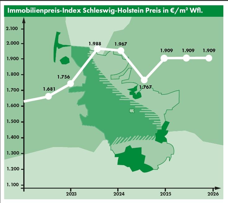 Der Wohnungsmarkt in Schleswig-Holstein zeigt auch im zweiten Halbjahr 2025 keine echten Veränderungen. Die Schaffung von neuem Wohnraum verläuft schleppend. Die Nachfrage nach Wohnraum ist ungebremst. Somit verbleibt der Überhang der Nachfrage im Vergleich zum bestehenden Angebot an Wohnraum. Deshalb ist es nicht verwunderlich, dass die Mieten immer noch eine steigende Tendenz aufweisen, natürlich bei Neuvermietungen stärker als bei den Bestandsmieten. Außerdem ist festzustellen, dass sowohl die Verknappung des Wohnraumangebotes als auch die steigenden Mietpreise in den Städten deutlicher als im Vergleich zum ländlichen Raum zu verspüren sind. Dennoch bleibt der Druck insgesamt auf dem Miet-/Wohnungsmarkt weiterhin hoch. Maßgebliche Veränderungen sind kurz- bis mittelfristig nicht in Aussicht zu stellen.