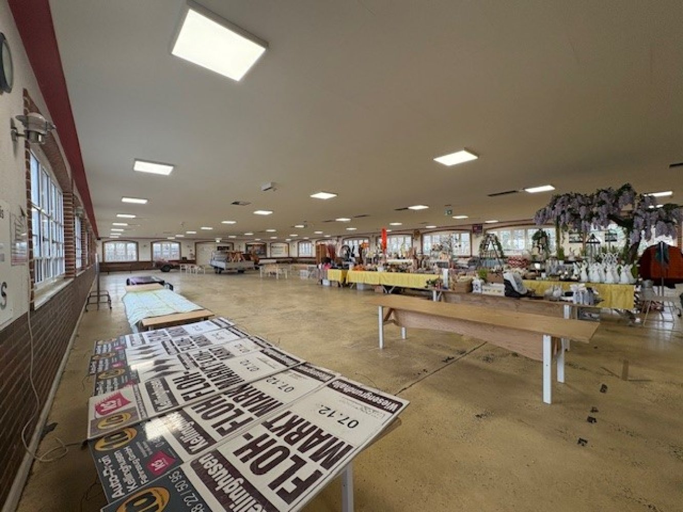Es ist möglich Bühnenelemente in dem Saal aufzustellen. Früher wurde hier Rassegeflügel präsentiert und nun ist der Vielfalt keine Grenzen gesetzt.