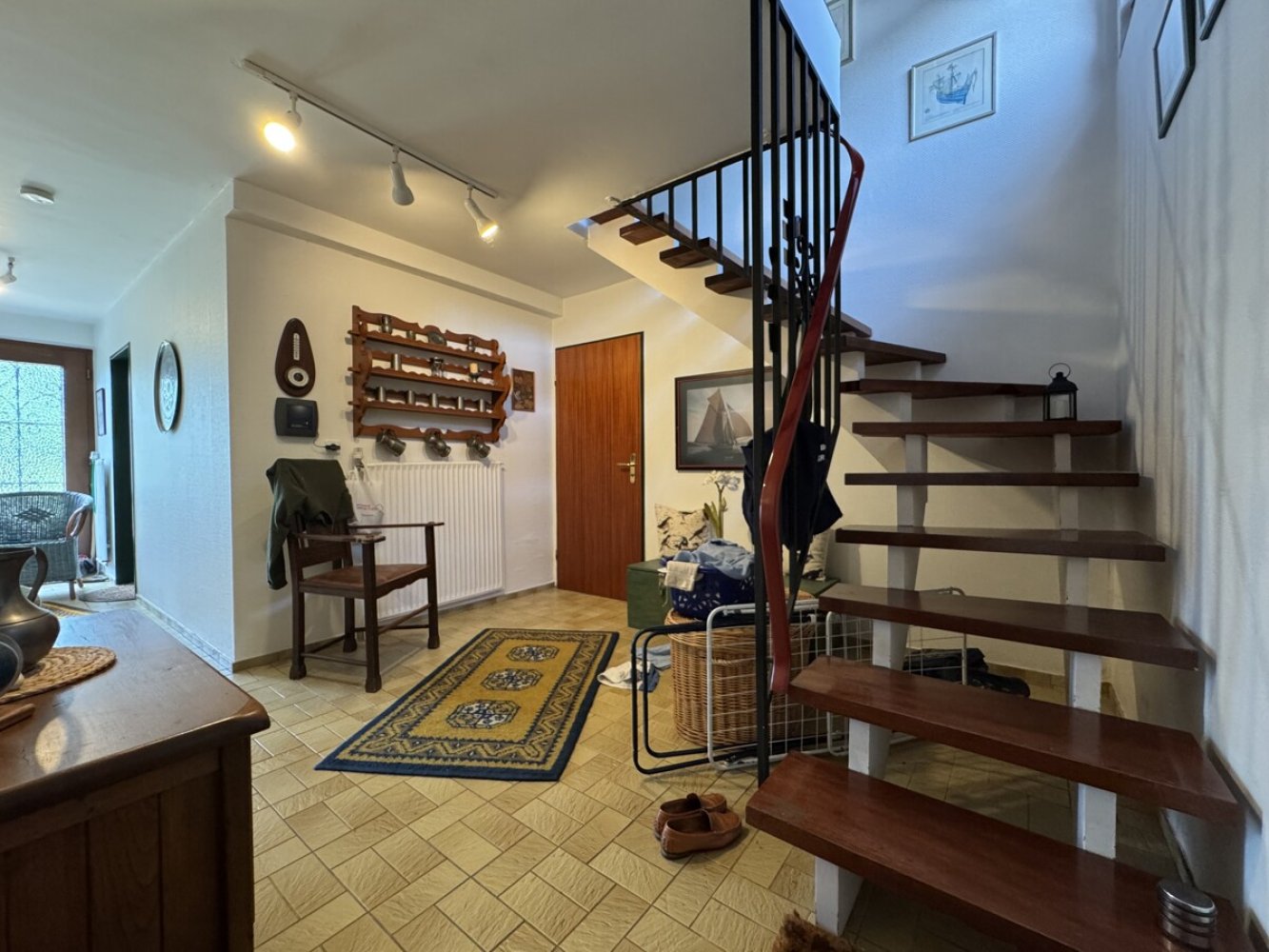 Beim Betreten empfängt Sie ein freundlicher Eingangsbereich, der zentral zu Erdgeschoss, Obergeschoss und ausgebautem Souterrain führt.