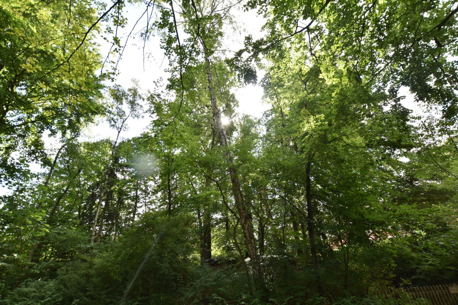 Aus Ihrem neuen Zuhause führen gleich mehrere Türen in verschiedene Himmelsrichtungen ins Freie. So gelangen Sie aus dem Wohnzimmer auf die Rasenfläche in Südausrichtung mit angrenzendem Wald, altem Baumbestand und einer schönen Artenvielfalt mit Spazier-, Ruhe- und Erholungsmöglichkeiten. Aus der Küche erreichen Sie die geschützte Nordterrasse und aus dem Hauswirtschaftsraum sowohl die Nordterrasse als auch die nach Südosten vorgelagerte überdachte Terrasse. Geschützte und uneinsehbare Bereiche bieten Möglichkeiten zum Erholen und Entspannen, während die Kinder auf der weitläufigen Rasenfläche ein paar Bälle kicken oder in Ihrem eigenen Wald kreative Baumhäuser bauen, Tannenzapfen, Moos, Blätter und Stöcke sammeln oder die massiven Stämme des imposanten Baumbestandes für ein Versteckspiel nutzen.