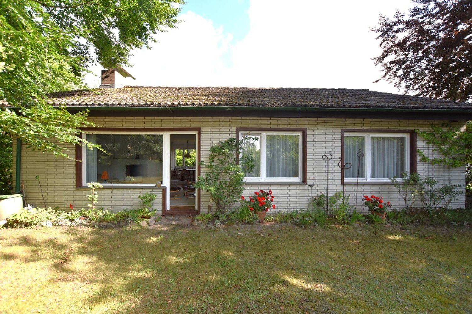 Der Bungalow gehört nicht ohne Grund zu den beliebtesten Haustypen und überzeugt, bei dem hier angebotenen, bebauten Eckgrundstück mit Privatwald auf insgesamt 1.551 m² und mit fast 100 m² Wohnfläche durch einen cleveren und vielseitigen Grundriss für komfortables Wohnen ohne Kompromisse. Durch die Bauweise des Hauses auf nur einer Ebene entfallen Treppen, wodurch nicht nur die Nutzfläche optimal ausgenutzt wird, sondern auch alle Räume bequem erreichbar sind, ganz gleich, ob für junge Familien mit Kindern oder für Paare, die bereits ans Alter denken. Neben der effizienten Flächennutzung überzeugt die gute Verbindung von Innen- und Außenbereich und sorgt für eine flexible und moderne Wohnatmosphäre.