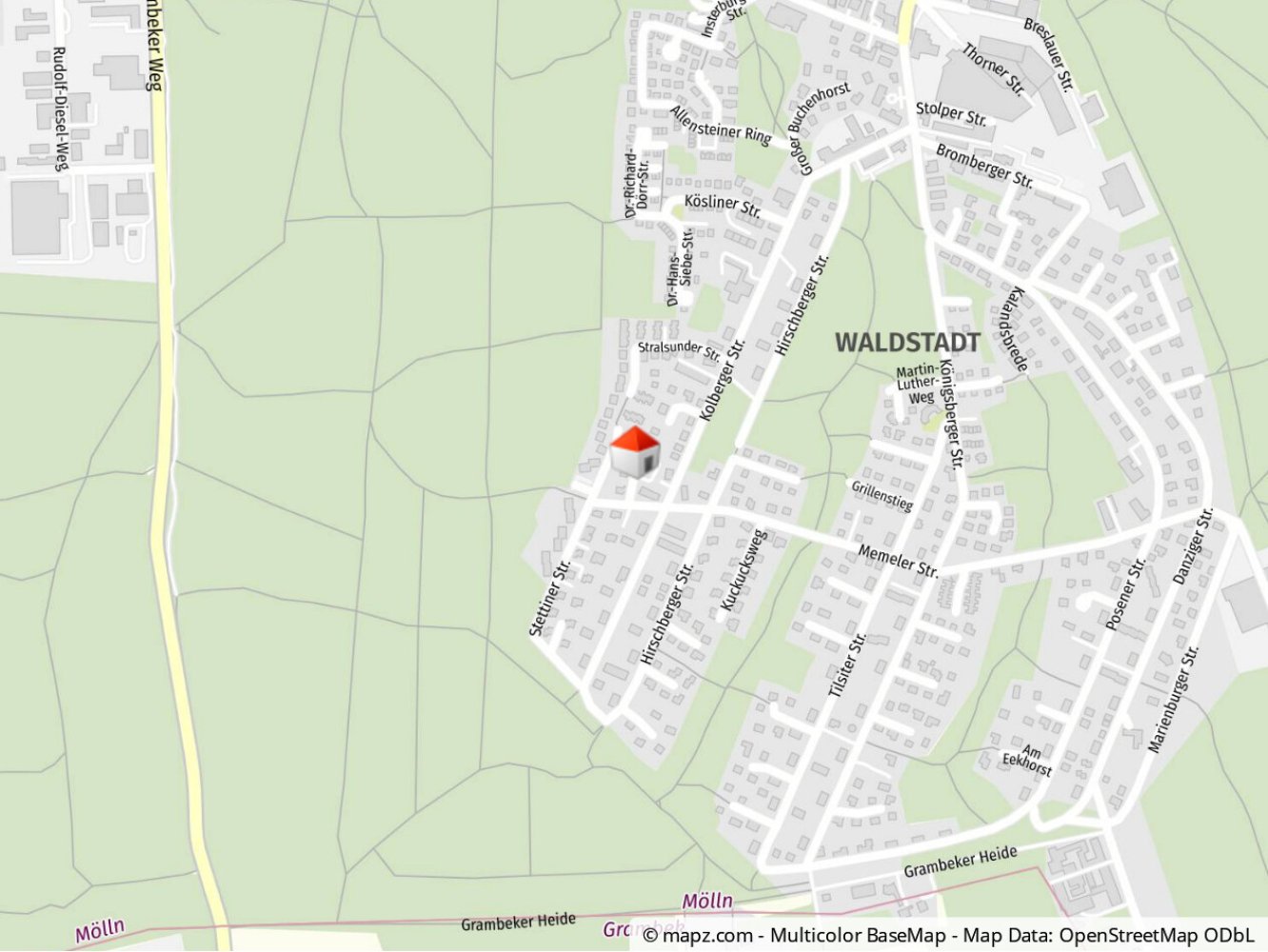 Die Immobilie befindet sich in Mölln-Waldstadt, so nennen die Möllner liebevoll den südlich außerhalb der Kernstadt liegenden Bereich innerhalb einer Waldfläche und ist ein optimaler Ausgangspunkt für leichte kürzere Wanderungen, kinderfreundliche Ausflüge, familienfreundliche Erlebnisse, aber auch ein guter Startpunkt für anspruchsvolle und schwere Wanderungen verschiedener Längen mit faszinierender Natur.