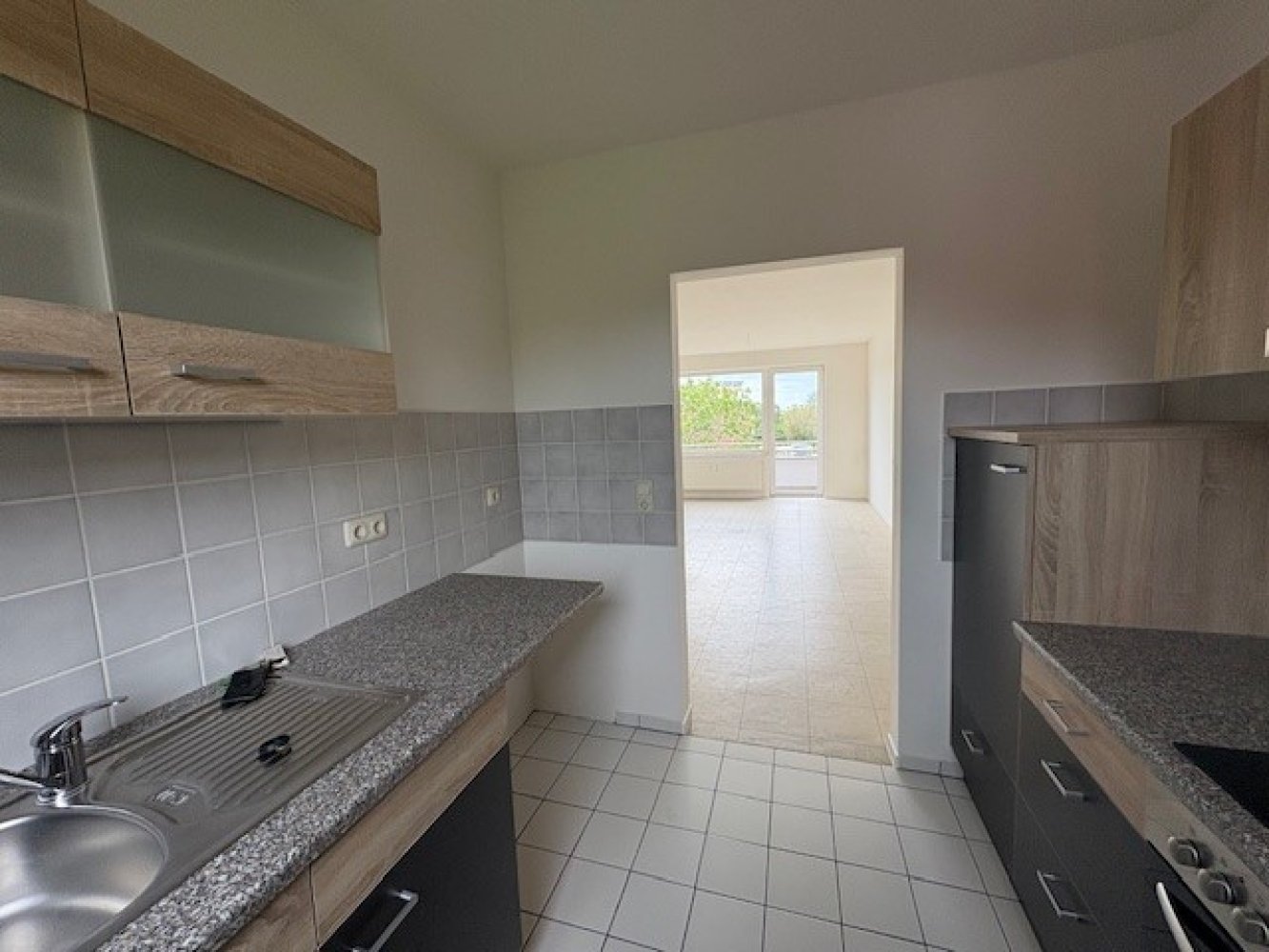 Es gibt ein ein helles Badezimmer mit Badewanne, Waschbecken und WC. Die helle Tageslichtküche ist mit einer zweizeiligen Einbauküche inkl. Geräten und Oberschränken ausgestattet.
