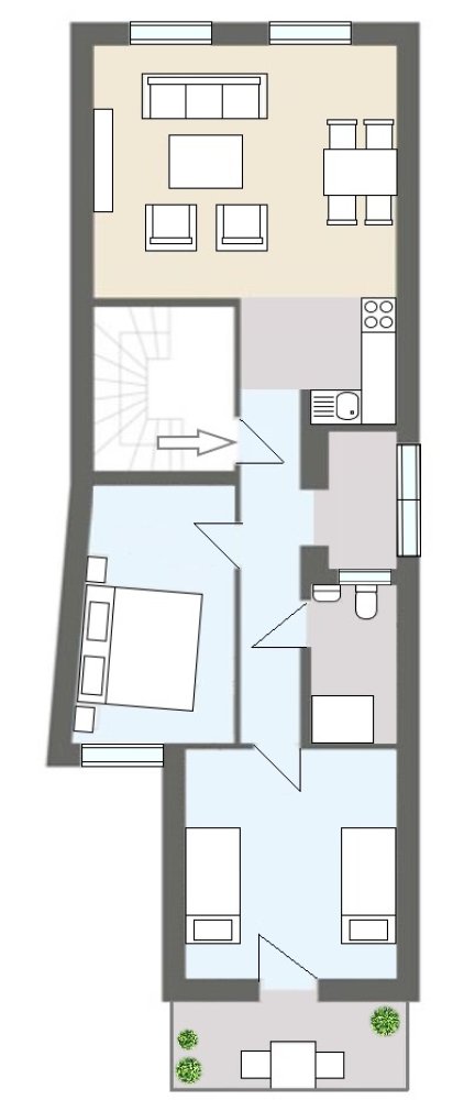 60 m² Wohnfläche • 3 Zimmer • 3 Schlafzimmer • 1 Badezimmer