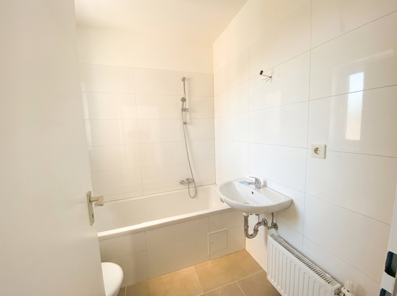 Das gut geschnittene Schlafzimmer kann nach Belieben mit einem großen Bett, Schrank und Schreibtisch möbliert werden.Das Badezimmer ist mit einer Badewanne, Waschbecken und ein WC ausgestattet.