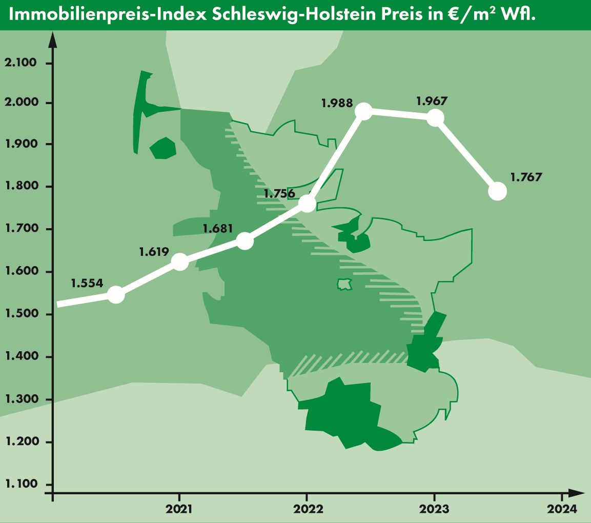 Zweimal im Jahr erstellt die Gutachtenabteilung der OTTO STÖBEN GmbH ihren Marktbericht, in den die Immobilien- und Vermietungspreise der einzelnen regionalen Bereiche Schleswig-Holsteins und des Hamburger Randgebietes einfließen. Tabellarisch gelistet werden die Werte für Einfamilienhäuser, Eigentumswohnungen und Kapitalanlagen, aufgeführt in den Kategorien ‚gut’, ‚mittel’ und ‚einfach’. Das Diagramm des Immobilienpreis-Index ermöglicht einen Überblick über die Entwicklung der Immobilienpreise der letzten Jahre in Schleswig-Holstein.