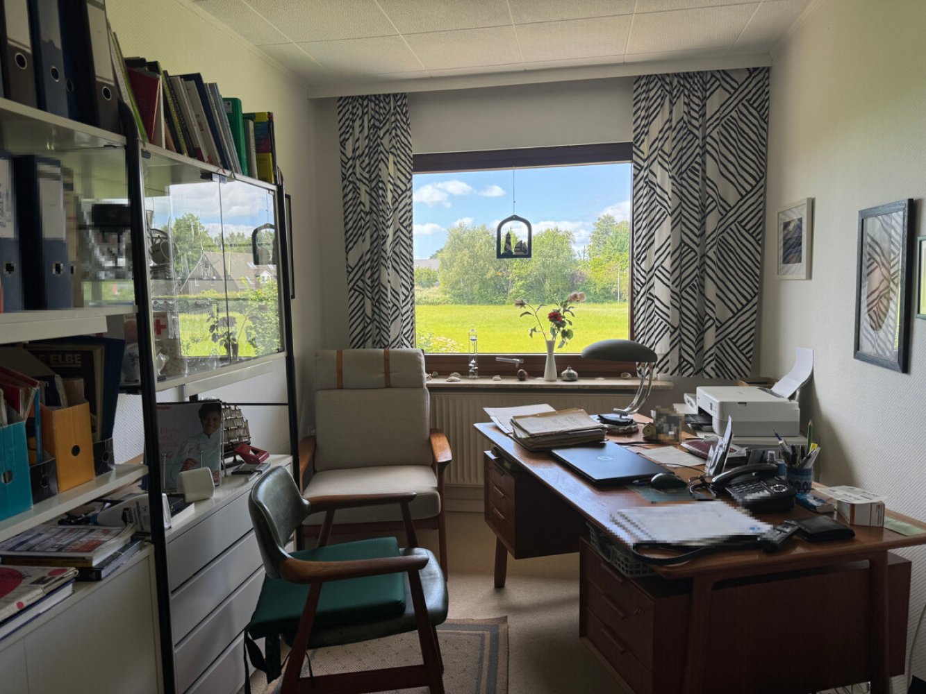 Im Erdgeschoss erwartet Sie ein lichtdurchflutetes Wohn- und Esszimmer mit Kamin, der in den kühleren Monaten für Gemütlichkeit sorgt. Von hier genießen Sie einen herrlichen Blick auf den Fluss – Natur direkt vor der Tür. Die angrenzende Küche mit Einbauküche und das Büro bieten ebenfalls Wasserblick. Ein stilvolles Gäste-WC rundet die Ebene ab.