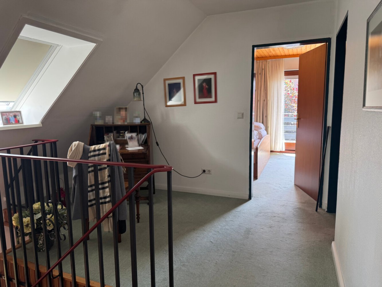Im Obergeschoss befindet sich das großzügige Schlafzimmer mit Balkon und freiem Flussblick – ideal für den Start in den Tag oder entspannte Abendstunden. Ein großes Bad mit Wanne bietet Komfort und Platz. Zwei halbe Zimmer eignen sich als Ankleide oder Homeoffice.