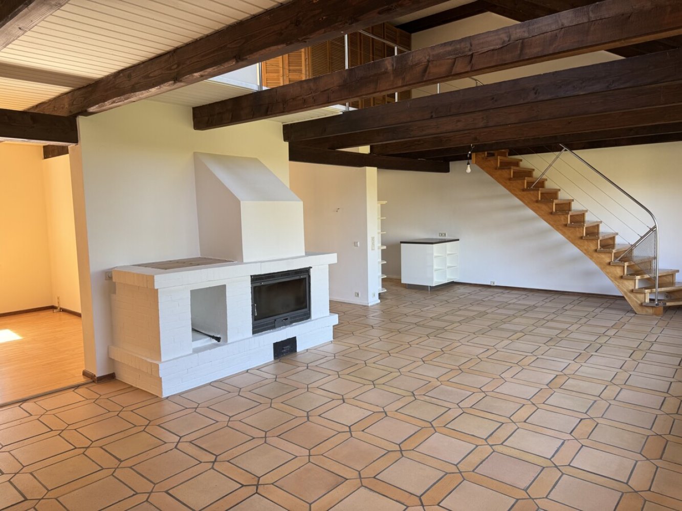 Dieses Reihenenmittelhaus besticht durch seine offene Bauweise mit Sichtbalken und Galerie!