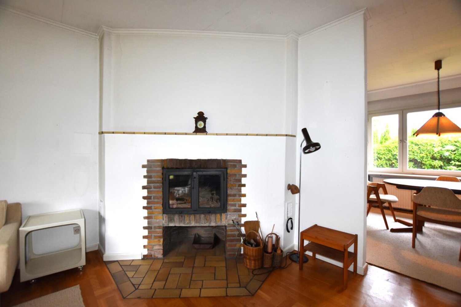 Der zentrale Platz des Bungalows ist die große Wohndiele, aus der alle Räume und eine praktische Garderobennische erreichbar sind. Der Bungalow bietet – neben zwei hellen Schlafräumen – ein Tageslichtwannenbad sowie ein separates Tageslicht-WC, eine Küche mit zweizeiliger Einbauküche in Eiche rustikal inklusive gängiger Einbaugeräte und cleverer Durchreiche. Praktisch: So kann das frisch Gekochte aus der Küche direkt an den Esstisch in das angrenzende, großzügige Wohn-Esszimmer – zugleich das Herzstück des Hauses – gereicht werden. Der große, multifunktionale, offene Bereich, erreichbar durch eine massive Doppelflügeltür mit Glasausschnitten, bietet ausreichend Platz zum Essen, Entspannen, Arbeiten oder Spielen. Die Wohnungstüren des Hauses sind aus kastanienbraunem Holz und geben dem Haus – in Kombination mit dem gepflegten Massivholzboden – ein gemütliches Ambiente. An rauen und stürmischen Tagen, wenn der Herbstwind durch die Bäume des hauseigenen Wäldchens weht, sorgt ein knisterndes Feuer im gemauerten Kamin des Wohnzimmers für ein angenehmes und wohliges Raumklima.