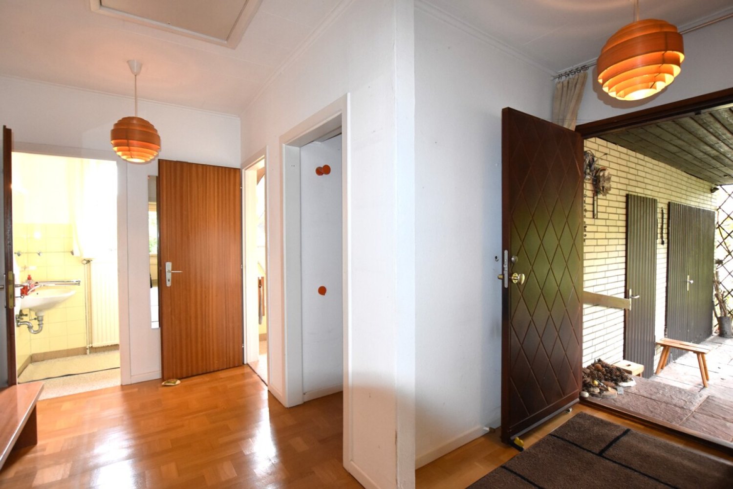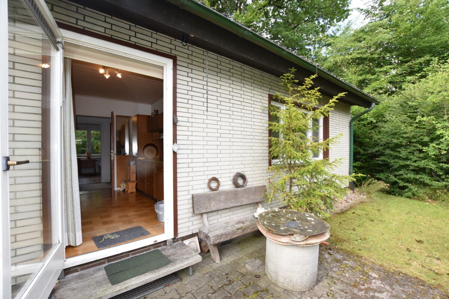 Der Bungalow gehört nicht ohne Grund zu den beliebtesten Haustypen und überzeugt, bei dem hier angebotenen, bebauten Eckgrundstück mit Privatwald auf insgesamt 1.551 m² und mit fast 100 m² Wohnfläche durch einen cleveren und vielseitigen Grundriss für komfortables Wohnen ohne Kompromisse. Durch die Bauweise des Hauses auf nur einer Ebene entfallen Treppen, wodurch nicht nur die Nutzfläche optimal ausgenutzt wird, sondern auch alle Räume bequem erreichbar sind, ganz gleich, ob für junge Familien mit Kindern oder für Paare, die bereits ans Alter denken. Neben der effizienten Flächennutzung überzeugt die gute Verbindung von Innen- und Außenbereich und sorgt für eine flexible und moderne Wohnatmosphäre.