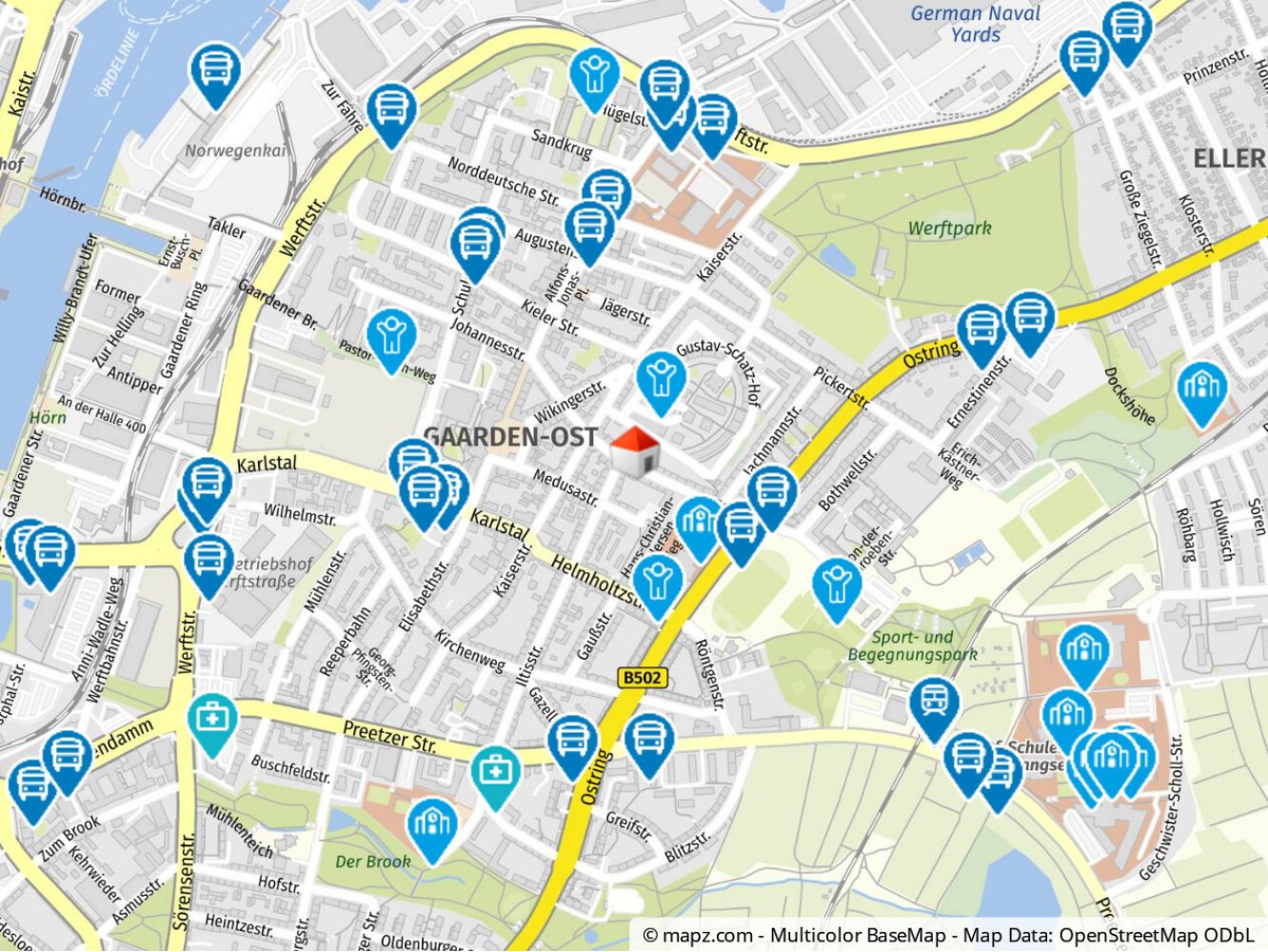 Diese Etagenwohnung liegt im vielseitigen Stadtteil Kiel-Gaarden, nur wenige Minuten vom Kieler Zentrum entfernt. Eine Bushaltestelle ist nur 220 Meter entfernt und Einkaufsmöglichkeiten befinden sich in 300 Metern Entfernung. Die Autobahnanbindung in 4,7 Kilometern Nähe ermöglicht eine einfache Verbindung zu weiteren Zielen. Eine ideale Lage für Singles und Familien, die städtische Annehmlichkeiten und einen ruhigen Rückzugsort suchen.