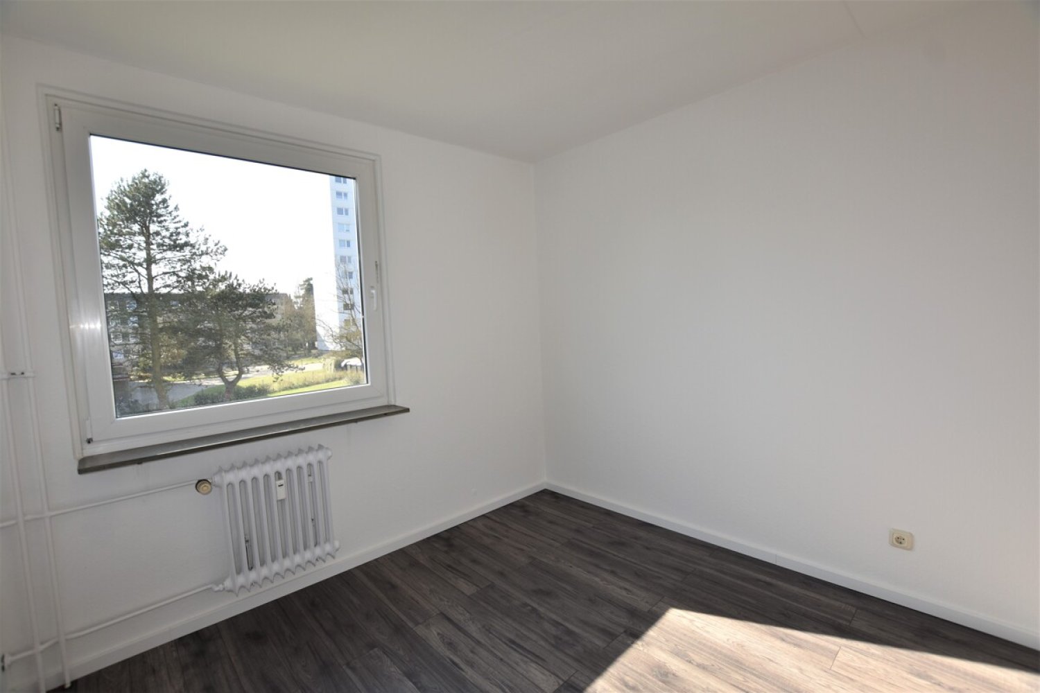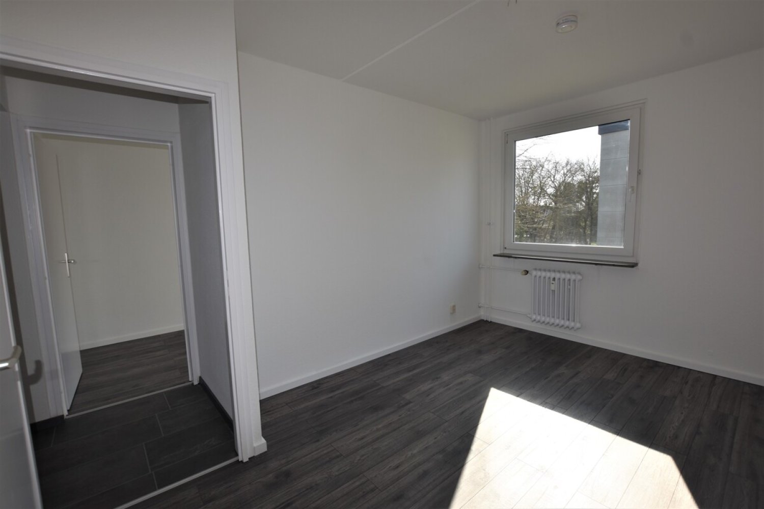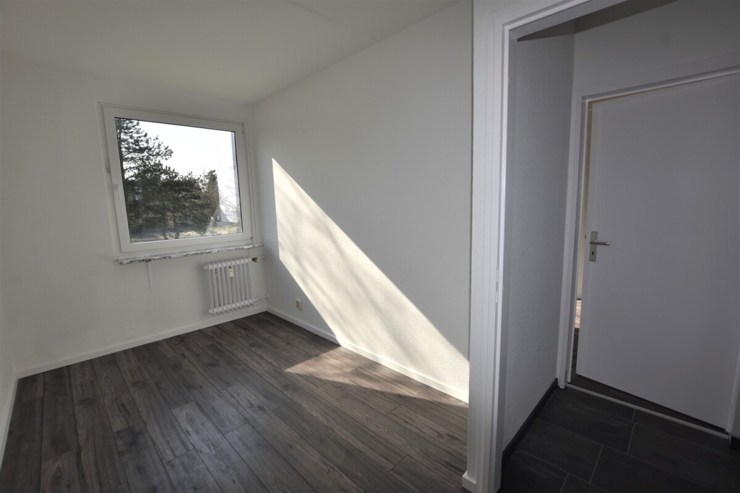Vom Flur aus erreichen Sie alle Räumlichkeiten. Das lichtdurchflutete Wohnzimmer bietet viel Platz für Wohnlandschaft, Wohnwand und der Balkon in Südwestr-Ausrichtung lädt zum Verweilen ein. Das großzügige Schlafzimmer kann nach Belieben mit einem großen Bett, Schrank und Schreibtisch möbliert werden.