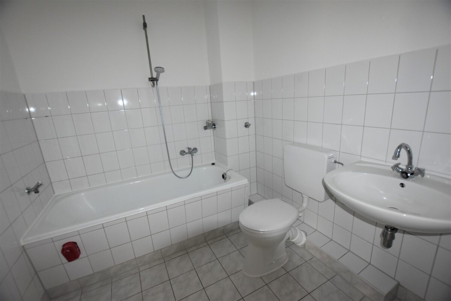 Das gut geschnittene Schlafzimmer kann nach Belieben mit einem großen Bett, Schrank und Schreibtisch möbiliert werden. Die beiden weiteren, kleineren Zimmer lassen sich hervorragend als Kinderzimmer oder auch als Arbeits- oder Gästezimmer nutzen. Das Badezimmer verfügt über eine Badewanne, Waschbecken und ein WC. Ein zusätzliches Gäste-WC ist vorhanden.