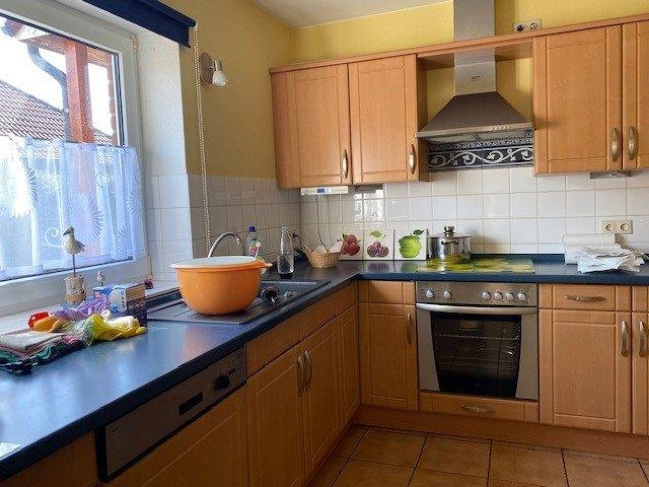 Über den Flur erreichen Sie die Küche, das Schlafzimmer, mit angrenzendem Vollbad, sowie das Gäste-WC, das über eine Dusche und Fenster verfügt, den Wohn- und Essbereich und das dritte Zimmer, das sich ideal als Gäste-, Arbeits-, Hobby- oder Kinderzimmer eignet. Die helle, gemütliche Küche ist ausgestattet mit einer Einbauküche, die über einen Backofen, ein Ceranfeld, eine Spülmaschine und einen Kühlschrank verfügt. Der angrenzende Hauswirtschaftsraum bietet zusätzlichen Stauraum und Platz für Ihre Waschmaschine. Durch Ihren eigenen Stellplatz, der nur wenige Meter von dem Außenzugang zum Hauswirtschaftsraum entfernt ist, verstauen Sie auch Ihre Einkäufe komfortabel.